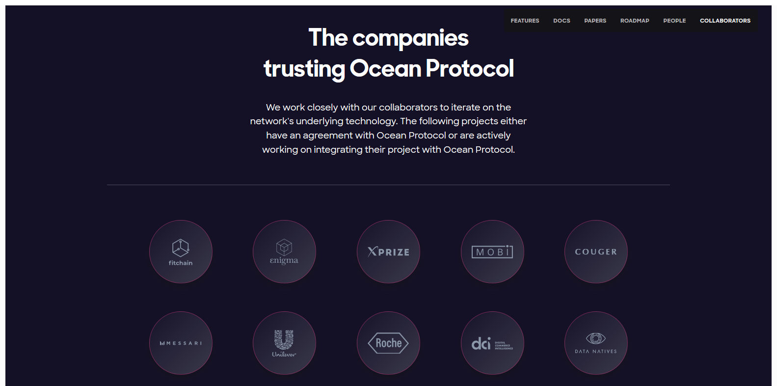 - Business development and the plan to actually see a solution adopted is something we put heavy weight on. Ocean Protocol goes into great depths around how they plan to scale their solution and put special highlights on their current and past efforts to onboard/work with various companies and other projects in the crypto space. Taking the vast amount of use-case scenarios into consideration from Ocean Protocols Business Strategy we can see the Team have made an excellent example with the health industry, namely ConnectedLife, Roche Diagnostics and many other big brand names in the medical diagnosis and treatment sector. ConnectedLife is actually building their own Data Marketplace on Ocean Protocol where private data can be anonymized and sold on to assist innovation and ultimately help others. A lot of what Ocean Protocol is doing has been made possible with some of their tech partnerships with projects like Enigma who specialize in a very similar sector of the crypto space, anonymizing data and allowing sensitive data to become valuable in a safe and ethical way. We highly recommend reading pages 15 through to 25 of their Business Strategy to really appreciate how connected Ocean Protocol is with their partners, working clients, and investors, it’s extremely impressive. With crypto partnerships including those with Enigma, Singularity AI, Fetch AI, Ethereum and a huge amount of VCs backing the project, Ocean Protocol is one of the most well connected projects we’ve seen in the Data Marketplace sector, especially with their recent Unilver and Next Billion partnership.