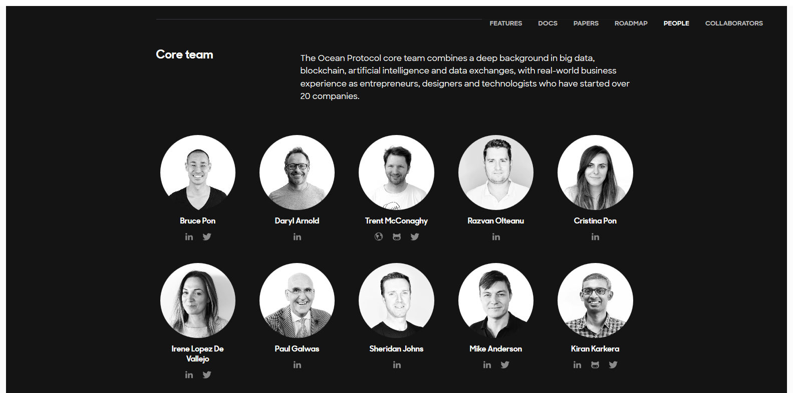 - Around 20 minutes into our research on Ocean Protocol we clicked on the “People” page on their website. We were shocked. Ocean Protocol has by far one of the most extensive and impressive Teams we’ve seen in this sector are being guided by some really experienced Advisors from various backgrounds. With 35 Core Members and 16 Advisors visible on their website, there’s no shortage of talent pushing this project forward on both a technical and strategical front. Bruce Pon (Founder) comes from BigChainDB and has years of experience in the data industry and it’s sectors including manufacturing, supply chain, IoT, media, healthcare and government. | Daryl Arnold (Co-Founder) is An entrepreneur experienced in data, marketing, technology and sustainability. Currently working as the Chairman of ConnectedLife, he provides not only a wealth of knowledge from his previous work but a big foot in the door for Ocean Protocol to explore opportunities in the health industry from the get go. | With a Roadmap that dates back to November 2017 and stretching through to March 2020, it’s clear that Ocean Protocol have been hard at work to create a product they’re proud of before hitting the market with their token. Investors can look forward to more technical advances through 2020 while the Team no doubt look to onboard new clients and slowly tap into sectors that are desperate for innovation.