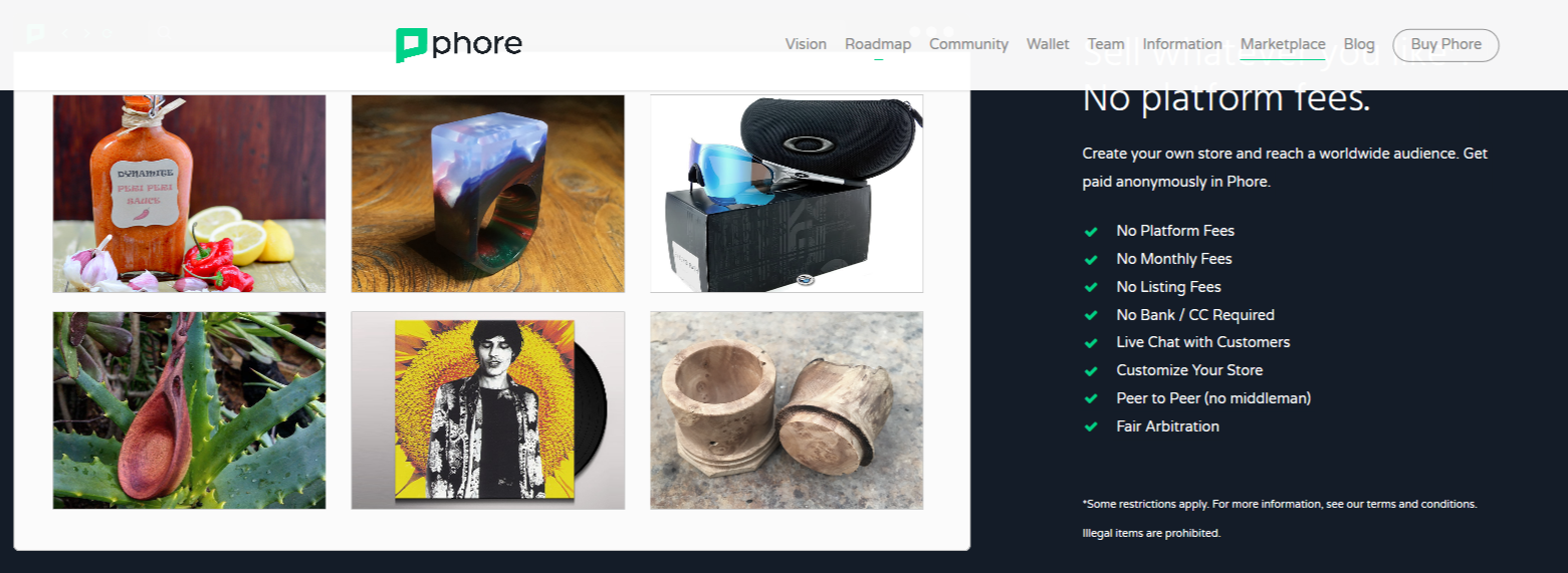 • The Phore Decentralized Marketplace is a real-world use for the Phore currency. An open-beta version of the marketplace is available now. Download the dAPP from the Marketplace page and start shopping.