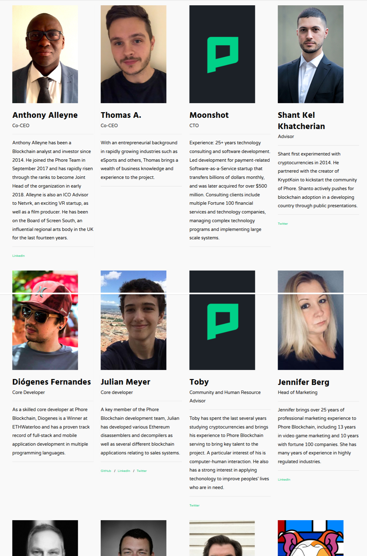 • The Phore Team Is Extensive in the Way That Each Member Has Their Own Roles Which Tend to Be Quite Specific. The Team Is Large Enough That They Can Have Members Dedicated to Things Such as “Head of PR & Partnerships” And “Graphic Design & Brand Development”. It’s Clear That the Team Have Come Together as a Community. Each Member Looks to Have Valuable Skills from a Wide Range of Industries. It’s Great to See a Team Large Enough Where Members Do Not Have Several Roles.